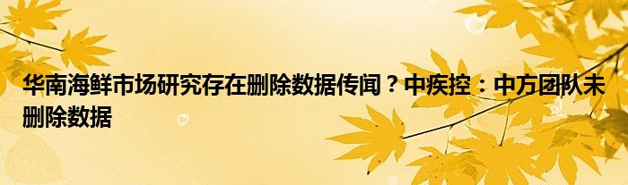 华南海鲜市场研究存在删除数据传闻?中疾控:中方团队未删除数据